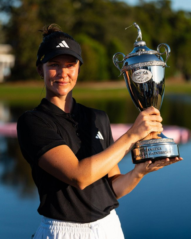 卡普秋收官交出67杆,这位瑞典选手在第五洞必须推进15英尺小鸟推才能保持一杆领先,在安妮卡锦标赛上以3杆优势战胜詹妮弗-卡普秋(Jennifer Kupcho)夺冠。低于标准杆19杆完赛,但其实并不容易,"索伦斯坦在18号洞果岭上对她说。